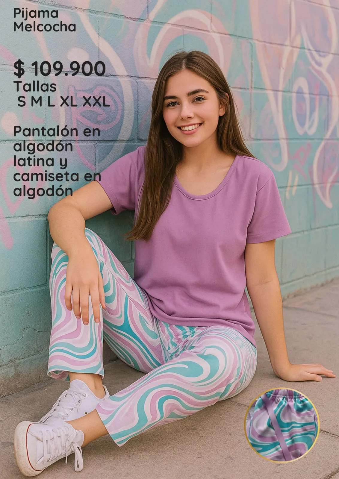 Pijama estampada Embone con pantalón y camiseta en algodón, cómoda y fresca para el descanso.